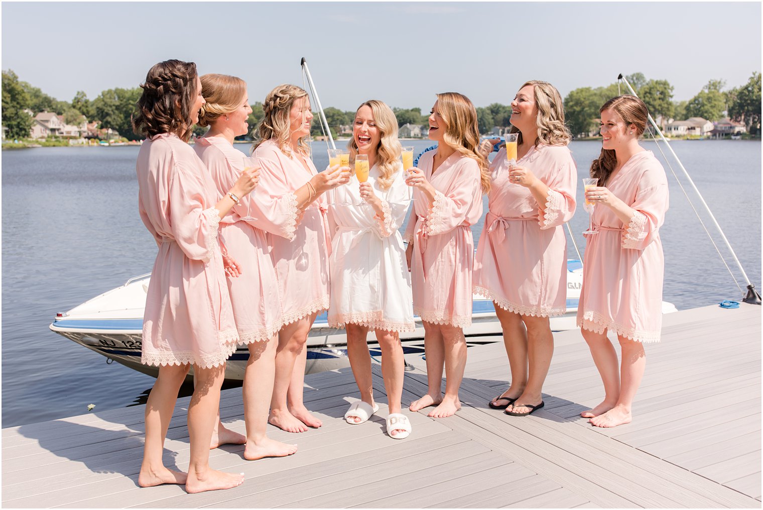 elegant wedding invitation from Minted bride prepares for NJ wedding day at Indian Trail Club bride and bridesmaids toast with mimosas on boat at Franklin Lakes NJ bride and bridesmaids pose on boat in New Jersey bride toasts on wedding day with bridesmaids in pink robes bride and bridesmaids hold custom champagne glasses with mimosas bride hugs bridesmaids in matching pink robes bride looks at classic wedding gown before Indian Trail Club wedding bride hanger with wedding ring in grey box and ivory flowers bridesmaids help bride into classic wedding gown bride's Badgley Mischka shoes for NJ wedding day bride and bridesmaids in pink gowns prepare for NJ wedding day bride cries with mother while preparing for NJ wedding day bride smiles wearing veil around shoulders dad's first look with bride before NJ wedding day bride and dad hug during first look on NJ wedding day wedding rings sit on classic wedding invitation groomsman helps groom prepare for Indian Trail Club wedding groom prepares for NJ wedding day at Indian Trail Club groom adjusts cufflinks for classic NJ wedding day groomsman helps prepare groom for New Jersey wedding groom holds lapel of grey suit with blue bow tie bride approaches groom for first look at Indian Trail Club groom smiles at bride during first look along water groom smiles at bride during first look at Indian Trail Club bride and groom kiss by trees at Indian Trail Club bride and groom hold hands at Indian Trail Club bride and groom hold hands walking along water at Indian Trail Club newlyweds walk by water at Indian Trail Club on wedding day groom looks at bride in strapless dress along water at Indian Trail Club newlyweds kiss during New Jersey wedding portraits bride in classic strapless gown holds bouquet of ivory flowers bride hugs groom around shoulders with bouquet bride stands in front of groom during Indian Trail Club wedding portraits bride and groom stand with wedding party in pastel pink and grey bride poses with bridesmaids in pastel pink gowns bride and groom hug during Indian Trail Club wedding portraits groom poses with groomsmen in grey suits with navy ties newlyweds kiss with wedding party around them at Indian Trail Club groom kisses bride's temple during Indian Trail Club wedding portraits bride poses with hands in pockets of wedding dress along water at Indian Trail Club newlyweds hug with bride's veil floating at Indian Trail Club groom poses with groomsmen in grey suits and navy ties bride poses with bridesmaids in light pink gowns bride and groom hold hands walking along waterfront at Indian Trail Club groom hugs groomsmen in grey suits for NJ wedding daygroom prepares for NJ Wedding day while bride poses with bridesmaids in pink gowns bride holds bouquet of white roses for summer Indian Trail Club wedding day bride and groom pose with ring bearers and flower girl waterfront wedding ceremony at Indian Trail Club ring bearer carries baby down aisle with flower girl wooden welcome sign for Indian Trail Club wedding ceremony dad walks bride down aisle during outdoor wedding ceremony in Franklin Lakes bride walks down aisle with dad during outdoor wedding ceremony in Franklin Lakes dad hugs groom during outdoor wedding ceremony in Franklin Lakes bride and groom stand during outdoor wedding ceremony in Franklin Lakes bride laughs during outdoor wedding ceremony in Franklin Lakes outdoor wedding ceremony in Franklin Lakes bride holds onto veil during windy outdoor wedding ceremony in Franklin Lakes newlyweds look at each other during outdoor wedding ceremony in Franklin Lakes bride and groom kiss during outdoor wedding ceremony in Franklin Lakes bride and groom cheer after outdoor wedding ceremony in Franklin Lakes newlyweds walk up aisle after outdoor wedding ceremony in Franklin Lakes bride and groom kiss in aisle during outdoor wedding ceremony in Franklin Lakes bride and groom walk into Indian Trail Club with bride's veil floating in air bride and groom hug on dock at Indian Trail Club groom twirls bride on dock at Indian Trail Club groom dips bride during wedding photos on dock at Indian Trail Club