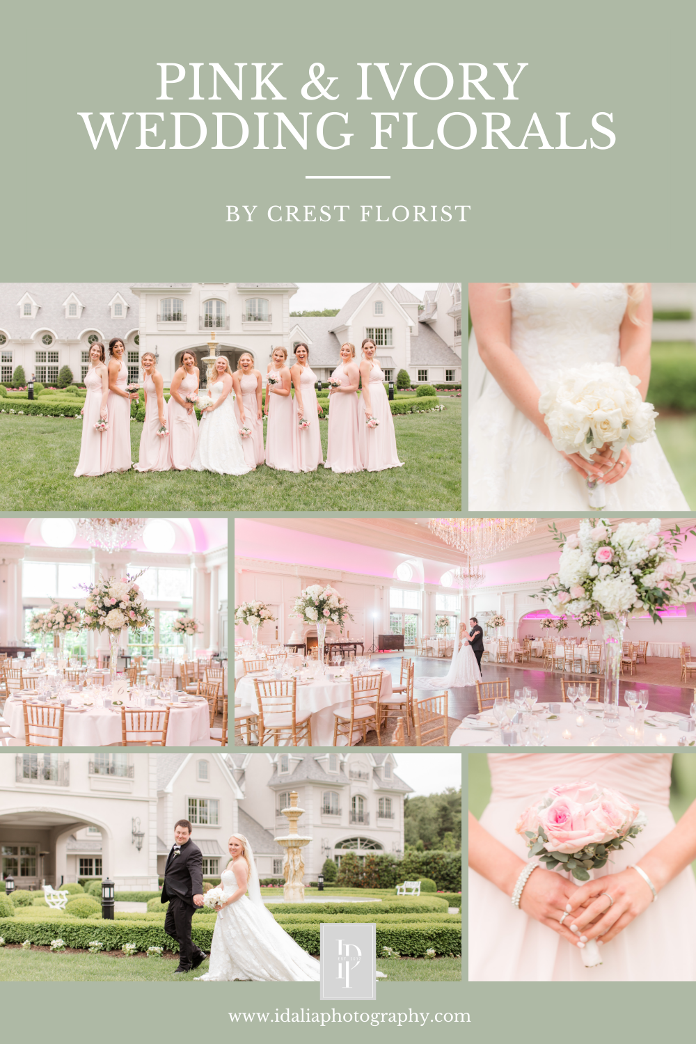 Amanda and Sean chose a color scheme of blush pink, white and silver for their spring Park Chateau Estate wedding- including the most exquisite white peonies and white roses for their floral arrangements. Neutrals and light pinks always work so well in the gorgeous rooms at Park Chateau Estate!