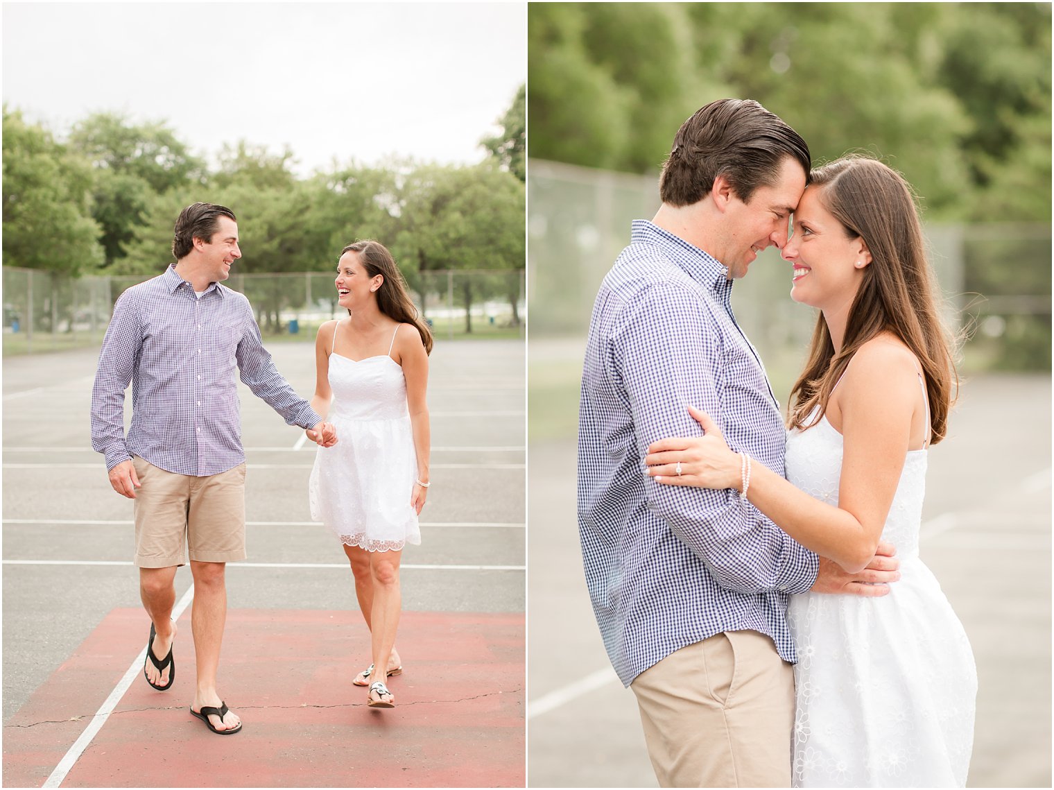 For Francesca and Kevin’s engagement session, we met in their current town of Belmar. Since they live near Maclearie Park, we thought it would be nice to do the session in a few spots that they frequent often and it did not disappoint! They even brought along their tennis rackets and bikes so we had the perfect mix of casual, sweet, fun, and romantic photos. After the park we took advantage of the views of the Shark River before walking over to the Belmar Marina and we loved using all the boats as a backdrop. This session just screams summer and it was a wonderful way to capture Francesca and Kevin’s last summer as single people! We’ve really been enjoying getting to know these two and are so looking forward to their wedding at St. Catharine’s and Spring Lake Golf Club. They are going to make such a beautiful bride and handsome groom! Here is a peek at their engagement photos and get ready for a wonderful proposal story, too.