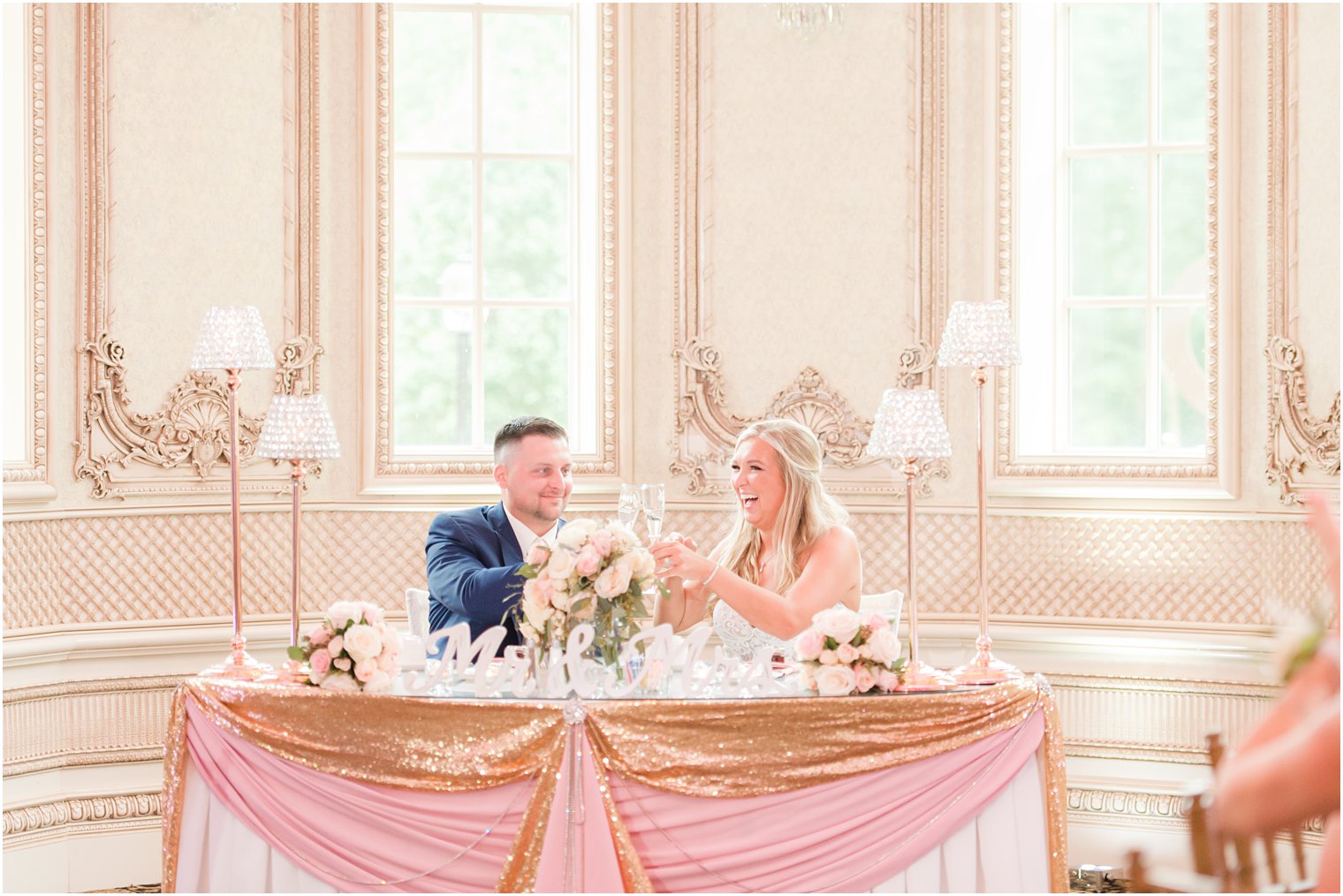 This elegant day was filled to the brim with gorgeous blush, ivory, and navy details. I loved their portrait session with pretty greens and summer light. The ceremony was held indoors in the chapel, which was both elegant and a wonderful reprieve from the heat that day!