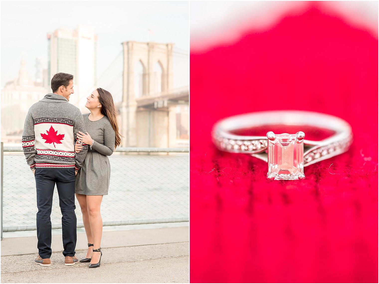I remember when I was single and spent my time dreaming of meeting my future husband during my travels abroad. I thought for sure I’d meet him somewhere in France, or maybe Spain. Well, that’s definitely not how it turned out for me (I met Jay just a few towns away from mine!) but that’s exactly how it happened for Alban. About four years ago, he traveled to Toronto to play in a tournament with the NYPD soccer team and happened upon Christine, a Canadian local, at a bar. They hit it off that night but the distance was a factor and they each went their separate ways. Until they met up again in NY and decided to give their relationship a try once again. As they say, the rest is history and these two are now planning a wedding at the beautiful St. Patrick’s Cathedral for this year! For their engagement session, Christine and Alban chose the Brooklyn Bridge and DUMBO as the main locations for their shoot. We were also able to fit in a short stop at The River Cafe, where Alban actually proposed to Christine! We met up at sunrise to avoid all the crowds and, boy, was it worth it! I don’t get to shoot at sunrise all that often but when I do, I enjoy every.single.second. You just cant beat that morning light! See for yourself in this recap of my time with Christine and Alban and stay tuned this coming May for their St. Patrick’s Cathedral and Battery Gardens Wedding!