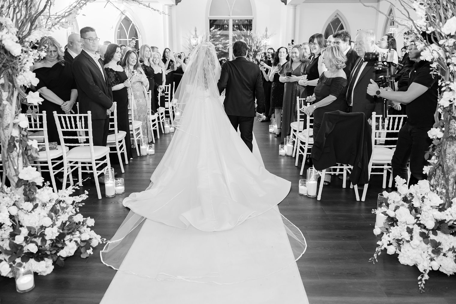 Ali looked incredibly sophisticated, her ensemble complete with trendy white gloves that added a touch of classic elegance to her look. This stylish detail made her feel like a timeless bride, perfectly suited to the elegant winter setting.