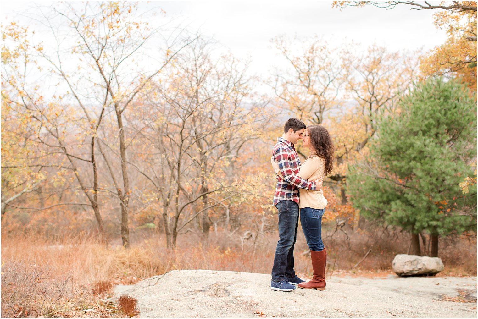 Last month, I had the pleasure of heading up to Bear Mountain to photograph Raquel and Chuck’s engagement session! These two got engaged just this past September but they already have their venue booked (for this coming June!!) and they quickly reserved a date in my calendar for their engagement session while the fall colors were still vibrant tones of yellows and burnt orange. When we were working together to choose a location for their engagement photos, we threw some ideas out there, including Bear Mountain State Park. I had been wanting to shoot there for a while and it seemed like it would be a perfect place for Raquel and Chuck’s session. I’m SO glad they loved the idea, too, because it ended up being quite an epic location for a shoot!! I’m not going to lie – it is quite a hike to get up there but it is SO worth the effort!! Wait until you see the views we had!