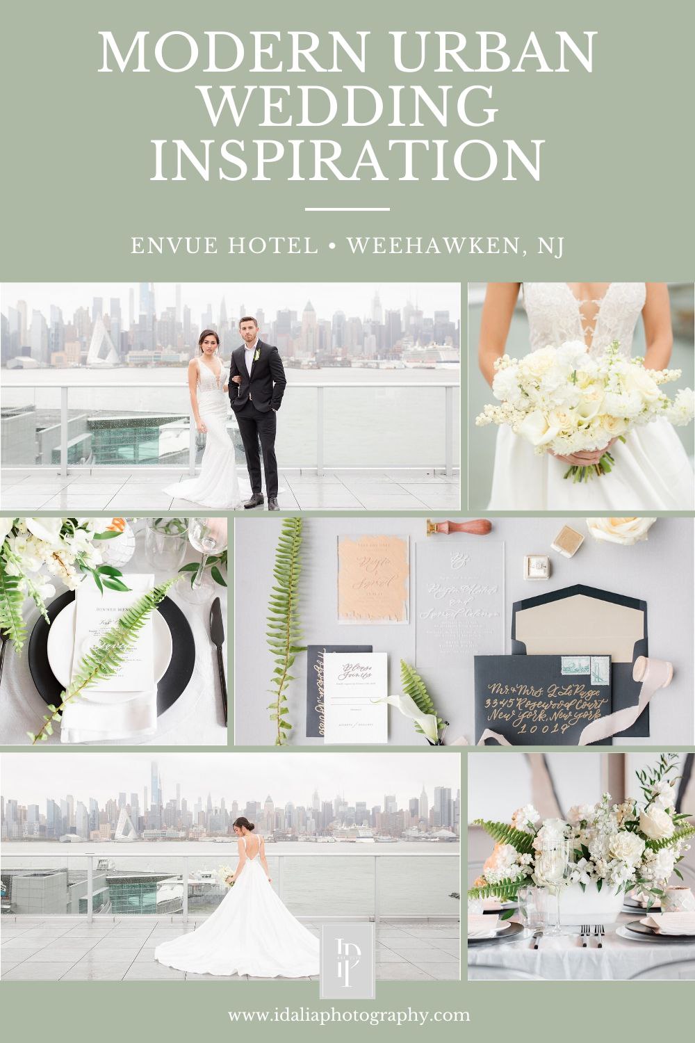 Modern and elegant NYC skyline wedding at Envue Hotel in Weehawken, NJ. Photos by Idalia Photography.