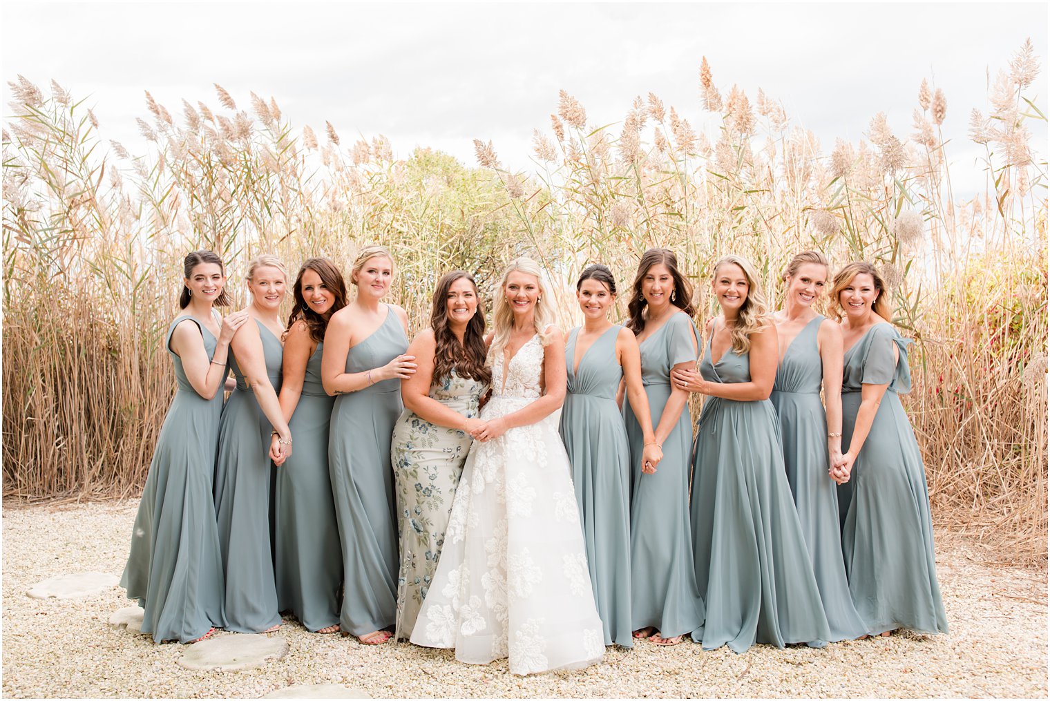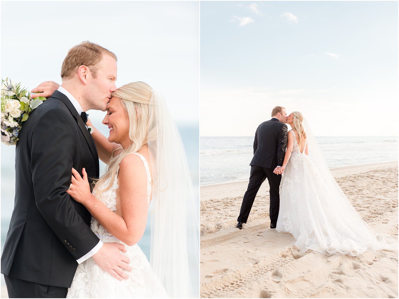They started their day getting ready with their loved ones at their beach homes and then had a traditional church ceremony at St. Mary of the Pines in Stafford Township. After the ceremony and a joyful church exit, we made a stop at the beach for photos before heading to Brant Beach Yacht Club for the reception. I loved Cara’s dress – it was so perfect for twirling and movement. It was stunning!