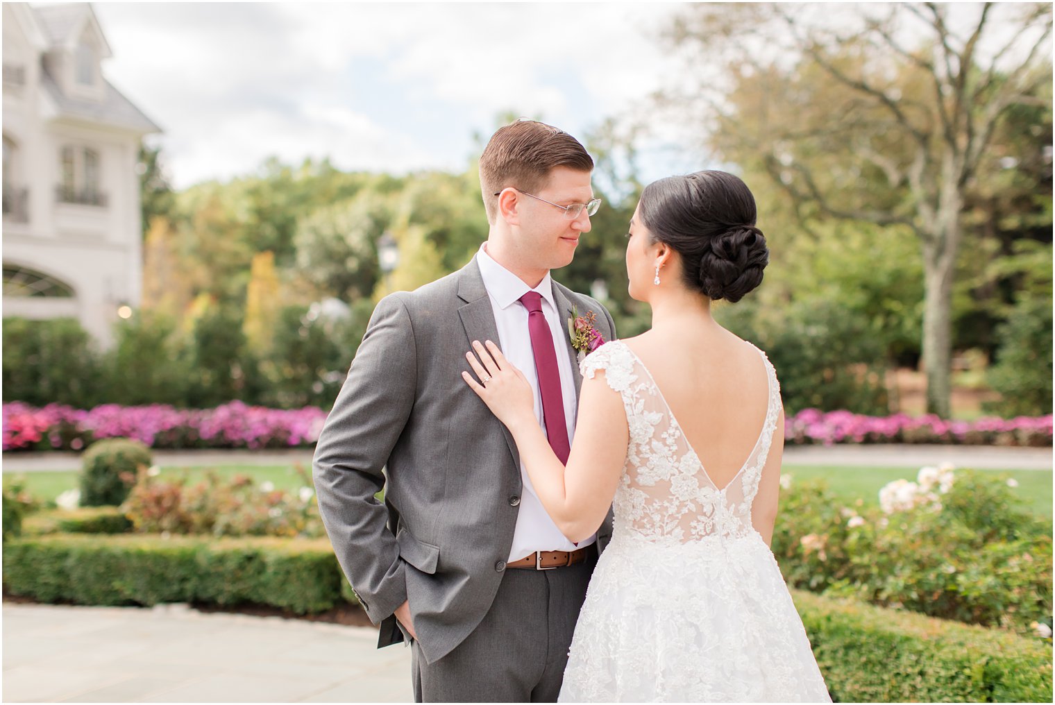 On their wedding day, Jamie and David took full advantage of their venue by getting ready on site, sharing their first look on the grounds, tying the knot in the gardens, and celebrating in the venue ballroom. My favorite part was all the anticipation that was present throughout the day. The nervousness before the first look was so sweet, the emotional exchange of vows was heartfelt, and the excitement of sharing their first dance in front of all their guests was so genuine.