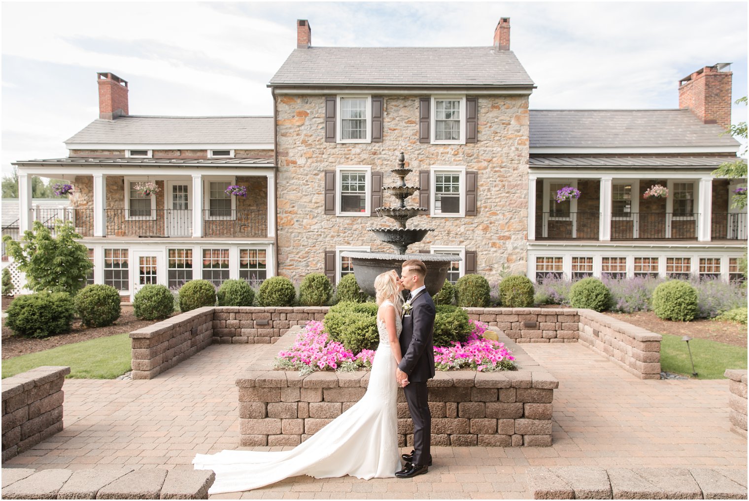 This wedding was a perfect blend of southern charm and New England prep. When searching for a venue, Rachel Joe also wanted their wedding to be fun for their guests and convenient for them, too, with everything at the same location. Their venue hunting covered several states – from PA to MA to CT to NJ, and as soon as they visited the Farmhouse at the Grand Colonial, they knew they had found the place. These two love history and were impressed by the fact that the main building dates from 1680! Not to mention it had beautiful grounds, a gorgeous ceremony space, and an elegant ballroom. With the help of the talented EVJ Wedding Co., Rachel and Joe created a beautiful wedding day from start to finish. It even included music by Rachel’s uncle, an award-winning jazz guitarist, who joined the jazz duet during cocktail hour while guests enjoyed drink and appetizers in the patio. It was such a relaxed start to the evening, perfect for the party that followed.