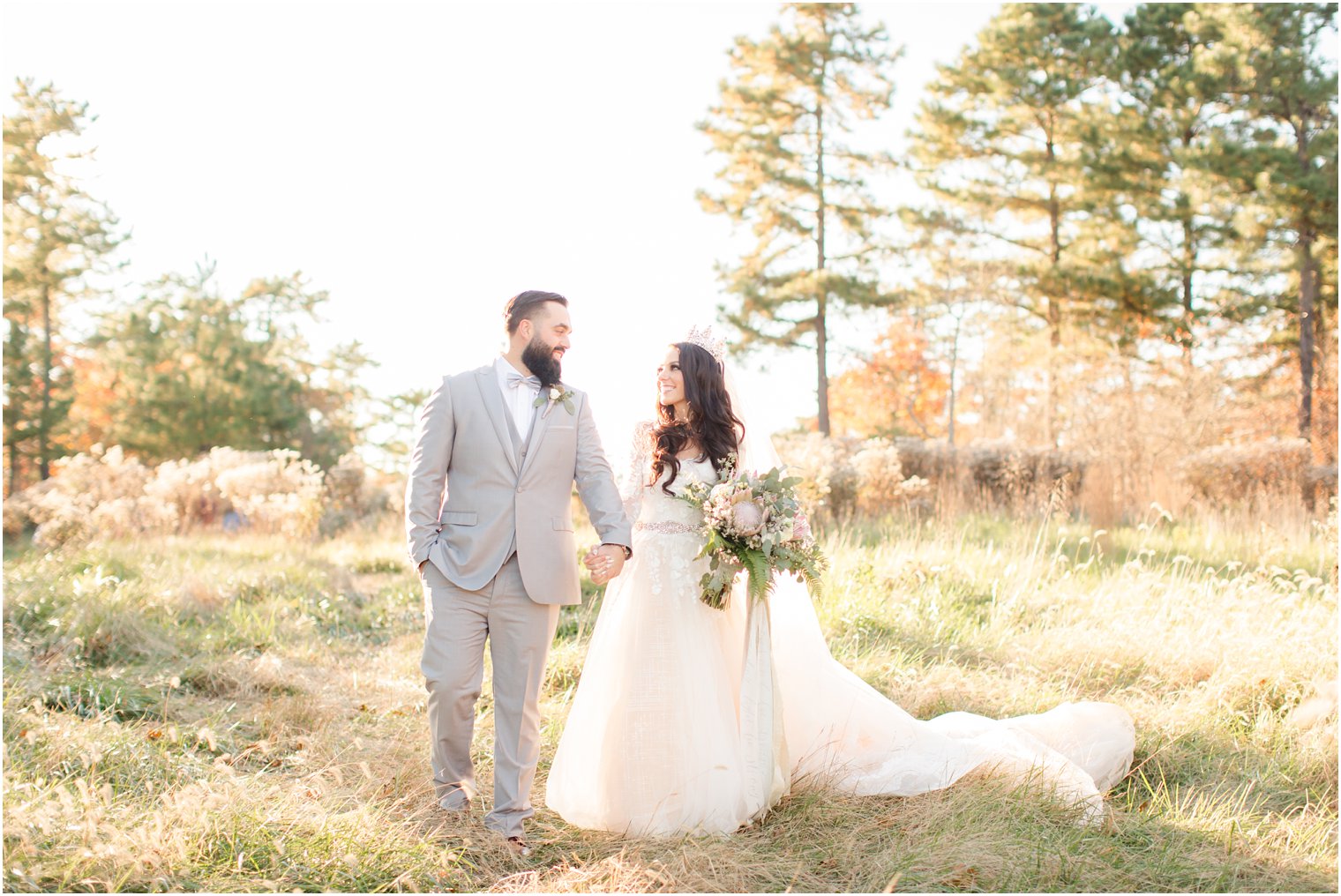 Ashley and Graham’s wedding day took place last Saturday on a chilly fall day. We may have several weddings in October but this was actually the first wedding that truly felt like fall with crisp temperatures and fall foliage. Ashley and Graham got ready with their families before their traditional church wedding. Once they had tied the knot, we headed to a local park for photos and we had a beautiful field with magical light all to ourselves. I just love the fall tones of the backdrop they had for their photos!