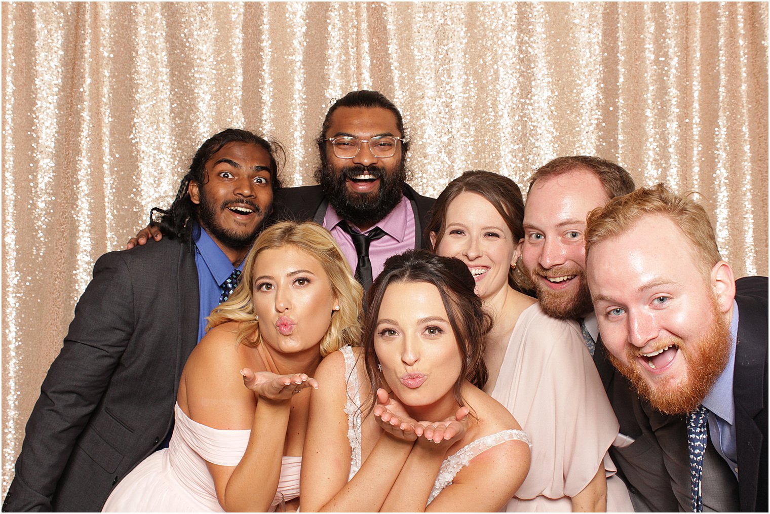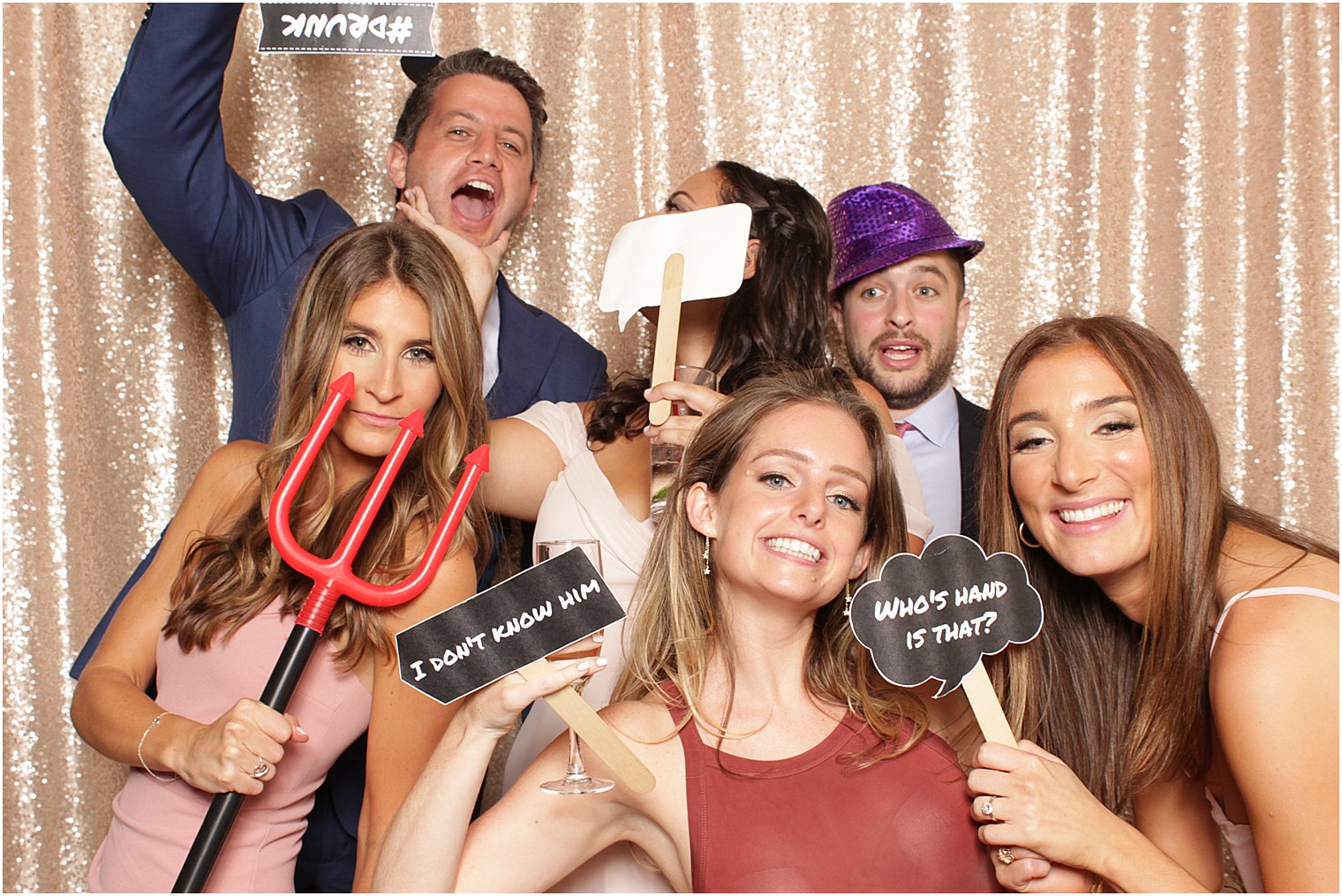 Amy and Nick had a stunning summer wedding at Indian Trail Club, one of my favorite venues! Our associate photographer Marianne documented their wedding day beautifully that day (check it out here) and our photo booth helped to capture some of the most fun photos of them and their guests during the reception. This wedding was a timeless black tie affair, so we kept the photo booth classic for them, too. Their photo booth strip design mirrored the simple elegance of their wedding invitation and our champagne sequin backdrop added just the right amount of sparkle. Also, this was the first post-COVID booth where we brought back PROPS! It was so fun to incorporate fun props again for all who wanted to use them! Check out some of my favorite images from Amy and Nick’s booth below!