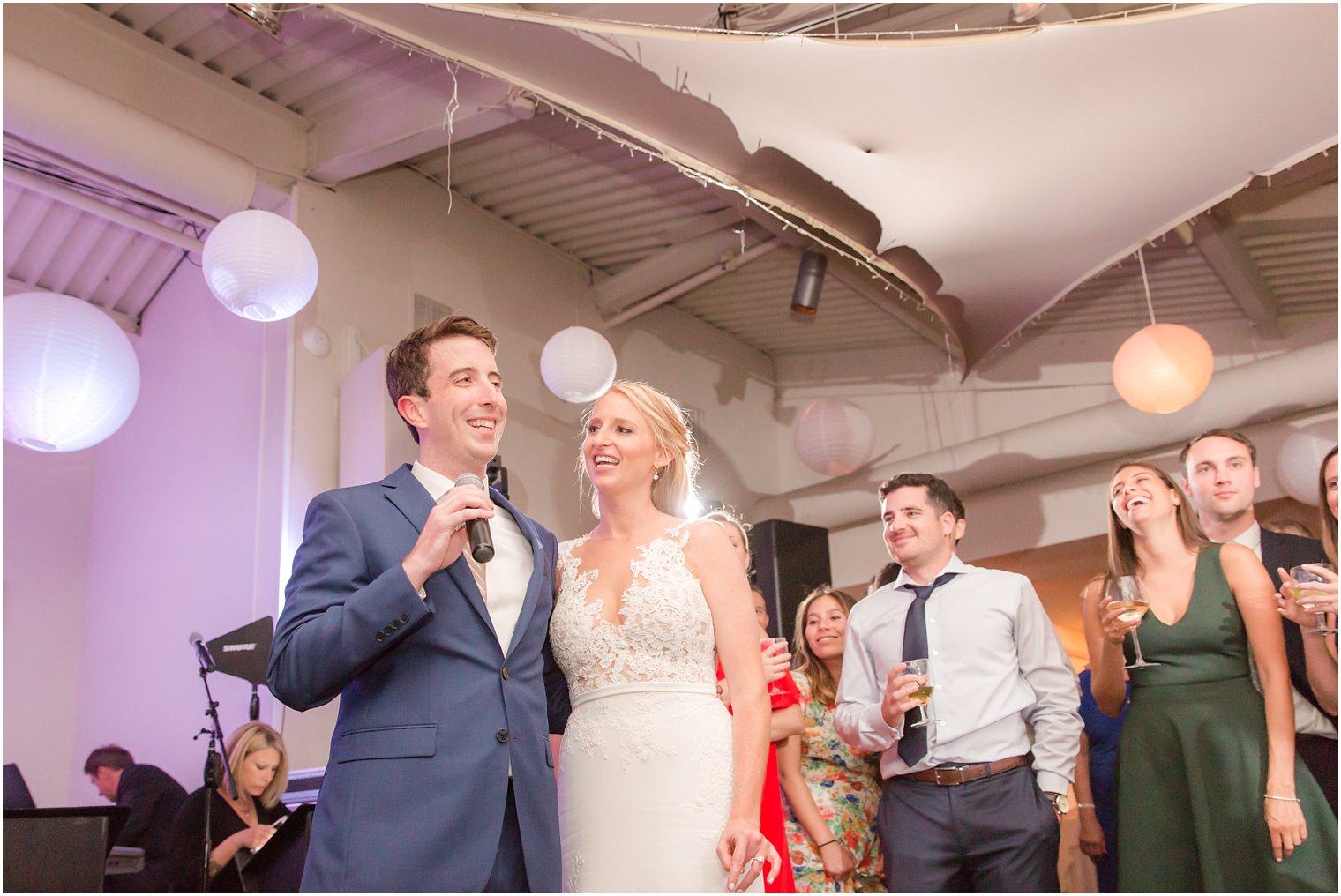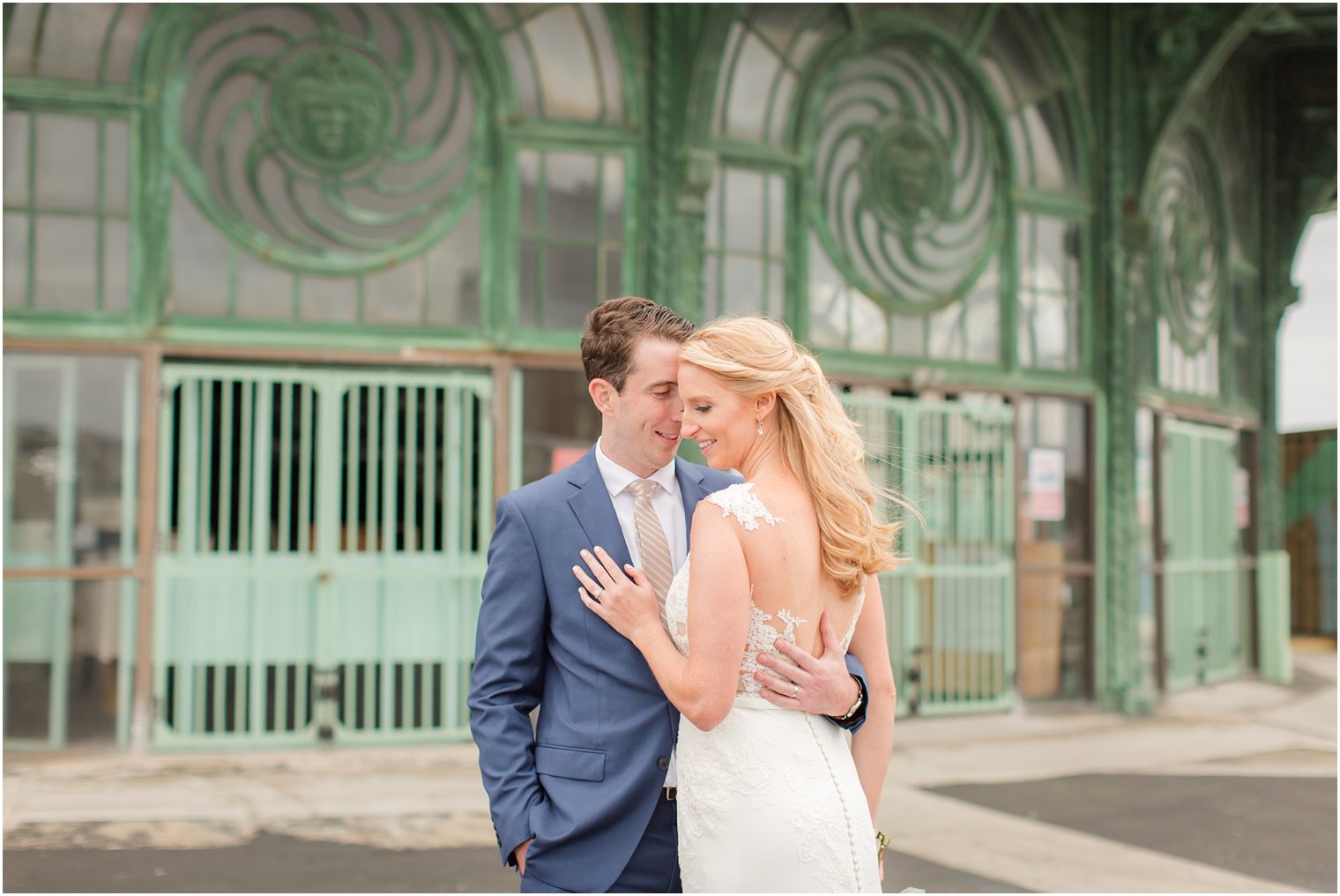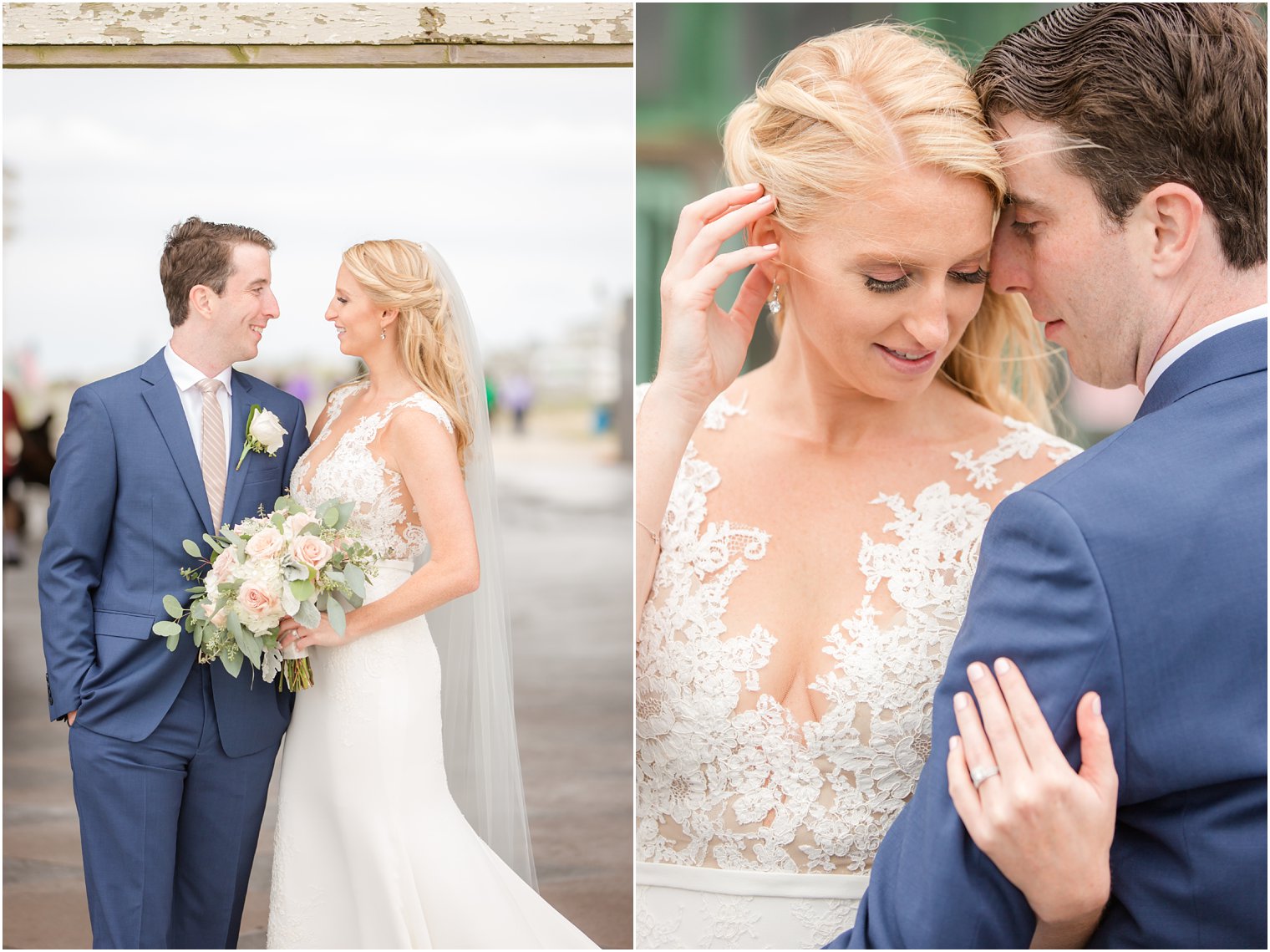All week, the forecast showed lots of rain so we prepared for what we thought would be our rainiest wedding of the year. Jay and I packed our stock of umbrellas and Megan ordered extra ones on Amazon, too. When I checked the forecast in the morning, it still showed rain, but not until later in the day, so we crossed our fingers that it would hold off until the reception. After the ceremony at Our Lady Star of the Sea we headed to Asbury Park for photos at the old casino in case of rain but we lucked out and we didn’t get any rain until the very end of the portrait session! We didn’t completely escape the elements because it was super windy but we’ll take wind over rain any day! After their portrait session, we headed back to Long Branch to celebrate at Mcloone’s Pier House. And by celebrate I mean PARTY – because these two and their friends and families take their celebrating very seriously, as you’ll see in the reception images below. Enjoy this peek into this lively wedding day and congratulations to Megan and Tyler!! Happy honeymooning in Greece! You’re going to love it there!