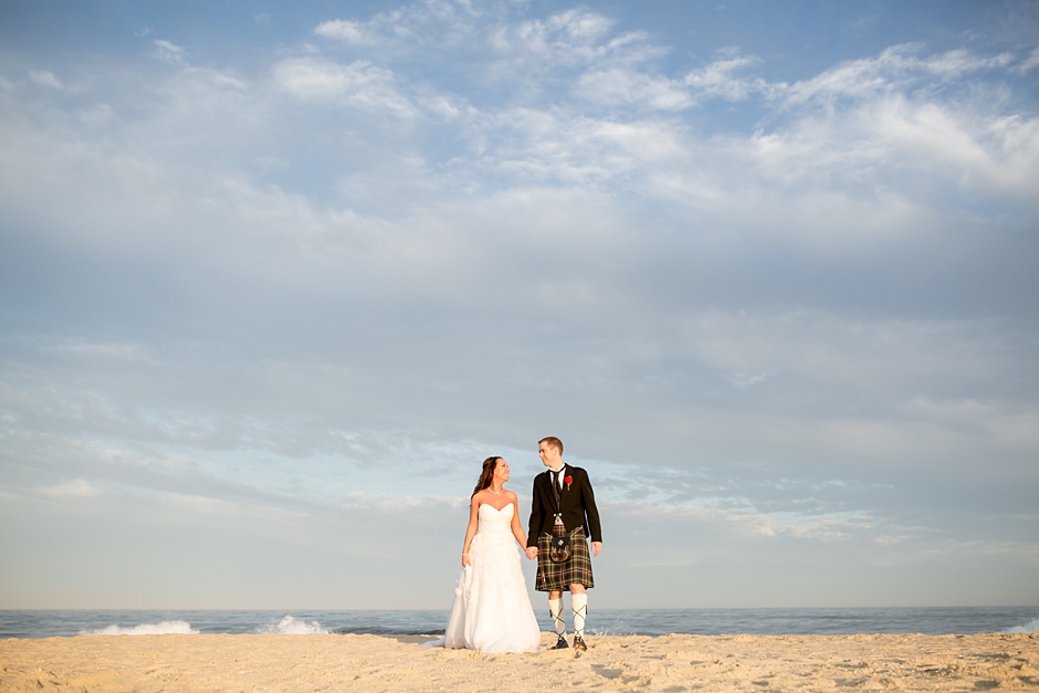 Andrew and Erin are the sweetest couple! They were married in August and decided to do a post-wedding session at Monmouth University last month. We were so honored to capture these memories for them! I love that these images include a reminder of Andrew’s native Scotland and feature allusions to his marriage proposal to Erin at The Globe Theatre in London. In addition to personalizing their session in so many sweet ways, the grounds at Monmouth University provided a storybook setting for this gorgeous couple. And to top it off, we ended our time together at a nearby beach at sunset. The result is a wonderfully romantic session that shows how in love these newlyweds are and how happy they are to be married! Enjoy just a few of our favorites!