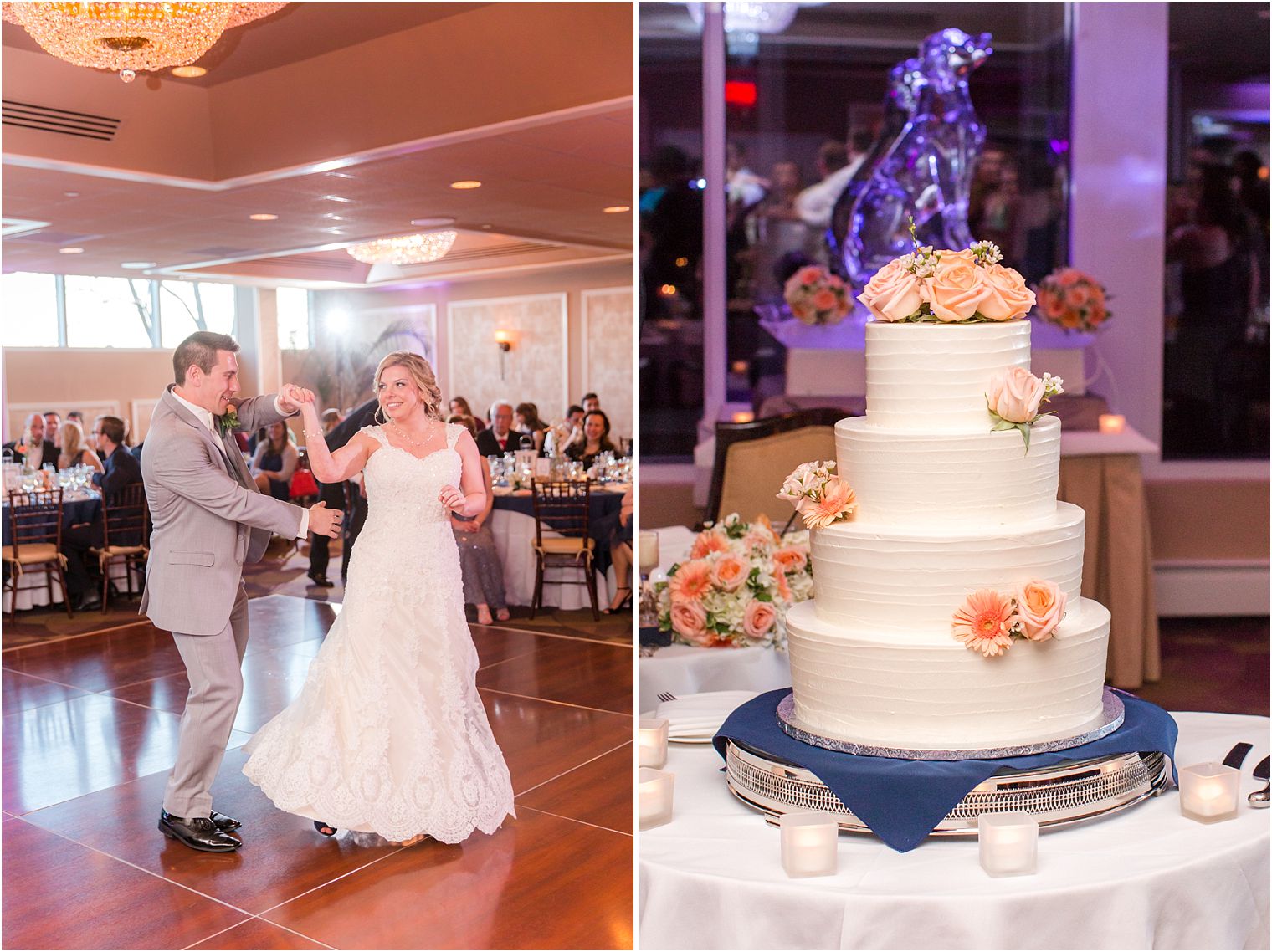 It rained the days leading up to their wedding day and it rained on the days following their big day, but on the day of their wedding, Lisa and James had nothing but blue skies. It was a perfect day for their beautiful nautical-themed wedding. They started their day at the Oyster Point Hotel where we loved discovering all the peach and navy details that our couple picked out to make their wedding day unique. I have to say that the stationery was so well thought-out! From the beautiful invitation to coordinating ceremony program to the matching table numbers, every detail was perfect! My favorite part of the day, though, was witnessing all the emotion experienced by Lisa, James, and their parents during the ceremony. There were so many happy tears!! Everyone was so excited to see our beautiful couple tie the knot and after a portrait session at Monmouth University, we headed to the Oyster Point Hotel for a fun night of celebrating and dancing. Lisa and James, thank you for allowing us to be a part of your day! We are so excited for you two to begin your lives together!! Enjoy your honeymoon in Italy and be sure to eat a gelato for us!