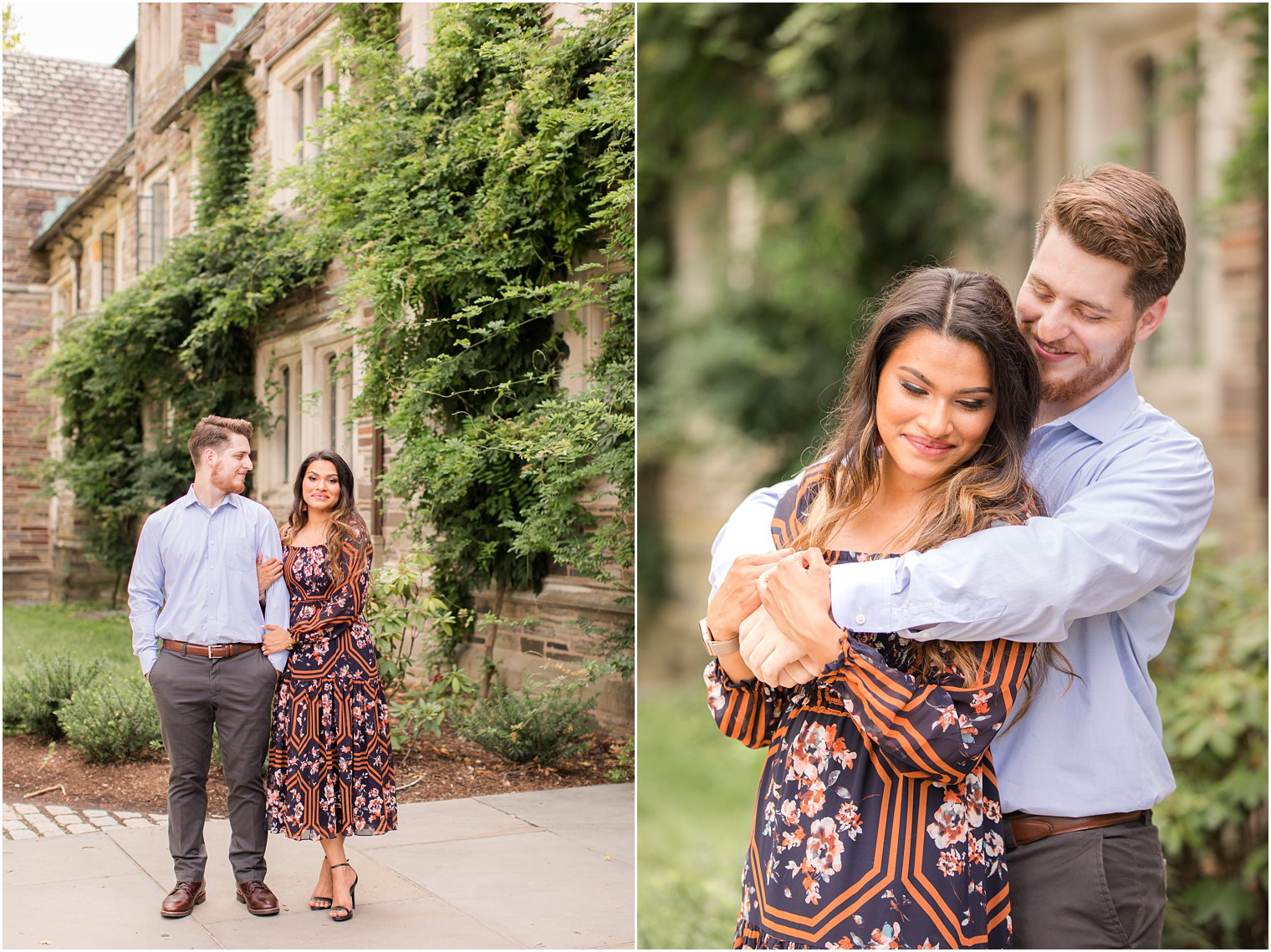 I don’t know about you, but August just FLEW by for me and I can hardly believe it’s the last day of the month today! After a quiet spring, things really picked up this summer with lots of engagement sessions and micro weddings and I couldn’t be happier to be shooting regularly again and meeting so many new couples! Fiza and Tom are one of the couples I had the pleasure of meeting this summer. These two were were engaged last December during the holiday season (more details on their sweet proposal below!) and they are currently planning a fall wedding! For their engagement session, they knew the type of setting they wanted and settled on the Princeton University campus. They fell in love with the history and culture of the grounds and decided it was the perfect spot for their engagement photos. Of course, it’s one of my very favorite spots to shoot at and I hadn’t been there all year so I was more than happy to meet them there!