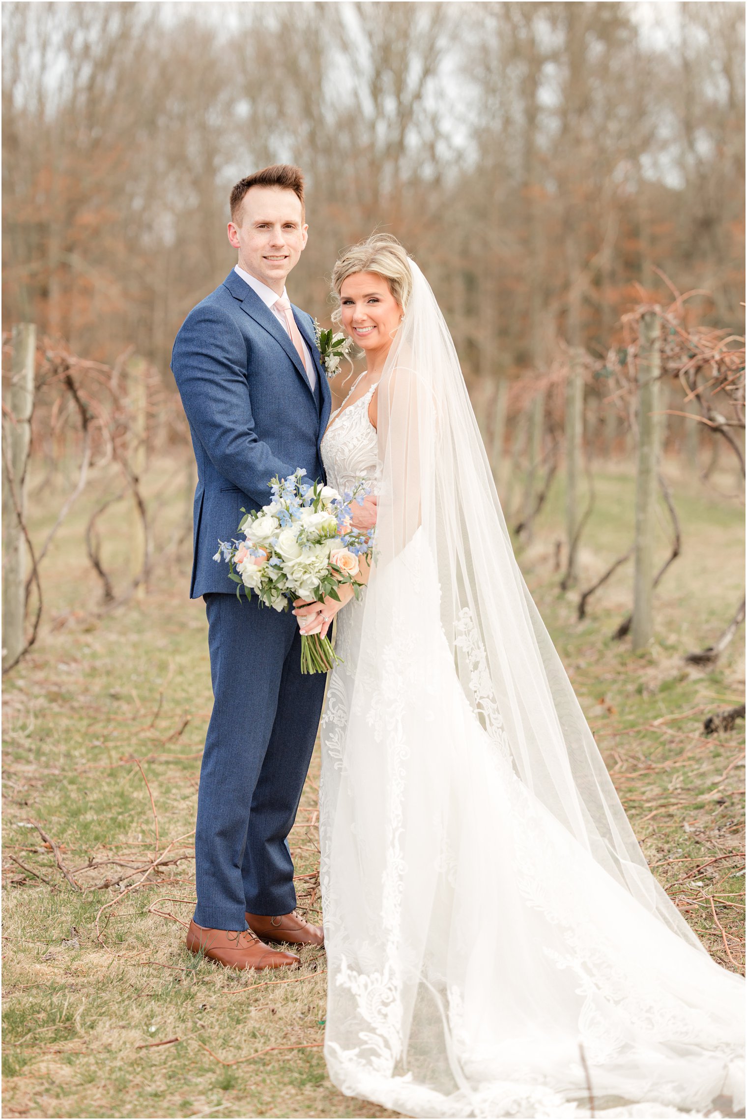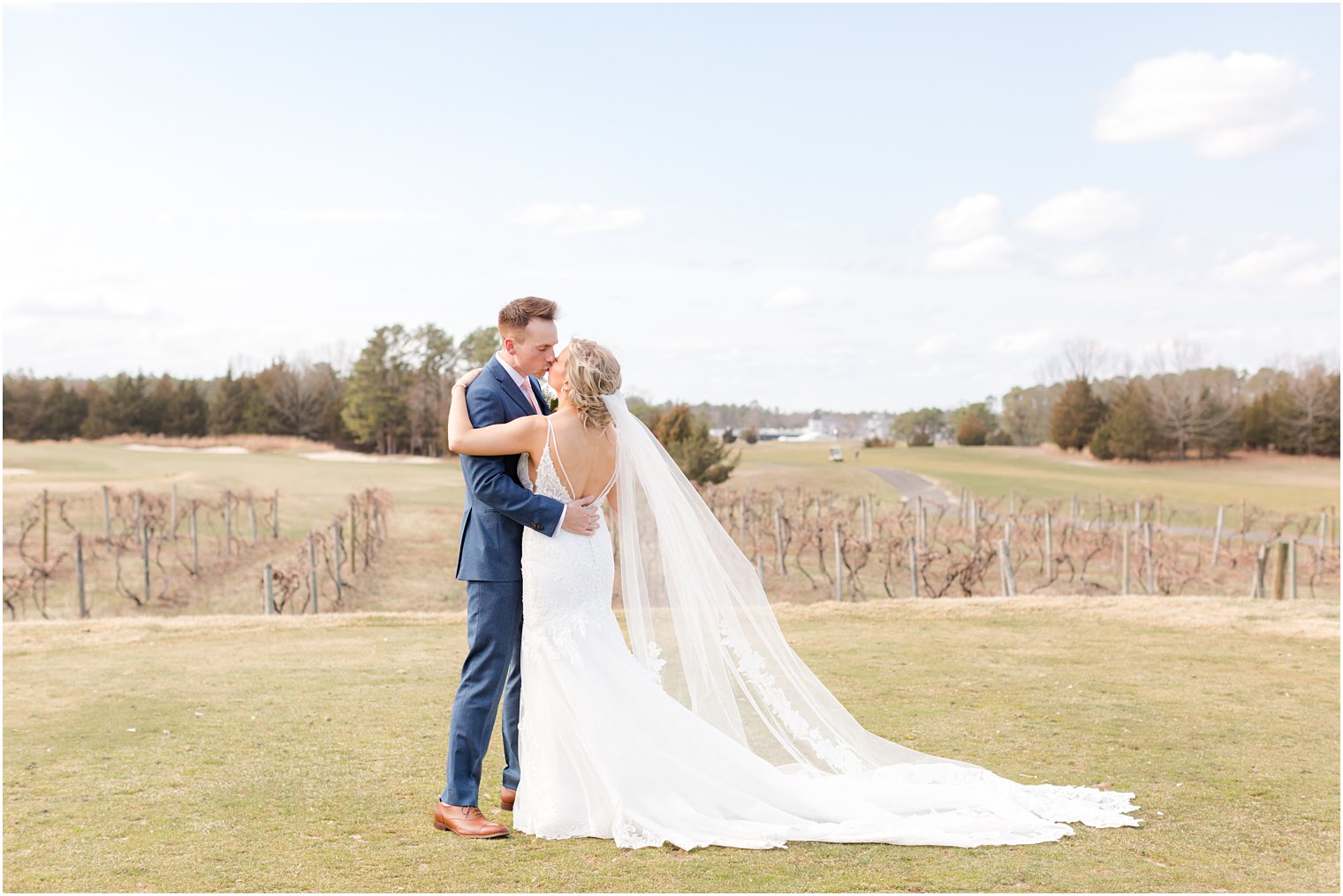 This beautiful spring Renault Winery wedding was a joy to photograph. With elegant ballet pink and light blue details, they really leaned into the start of spring to plan their big day and it turned out perfect because we had a gorgeous almost 70 degree day. What a relief after a whole week of watching the forecast indicate it was going to rain all day! The weather surprised and delighted us all and we were all so thankful!