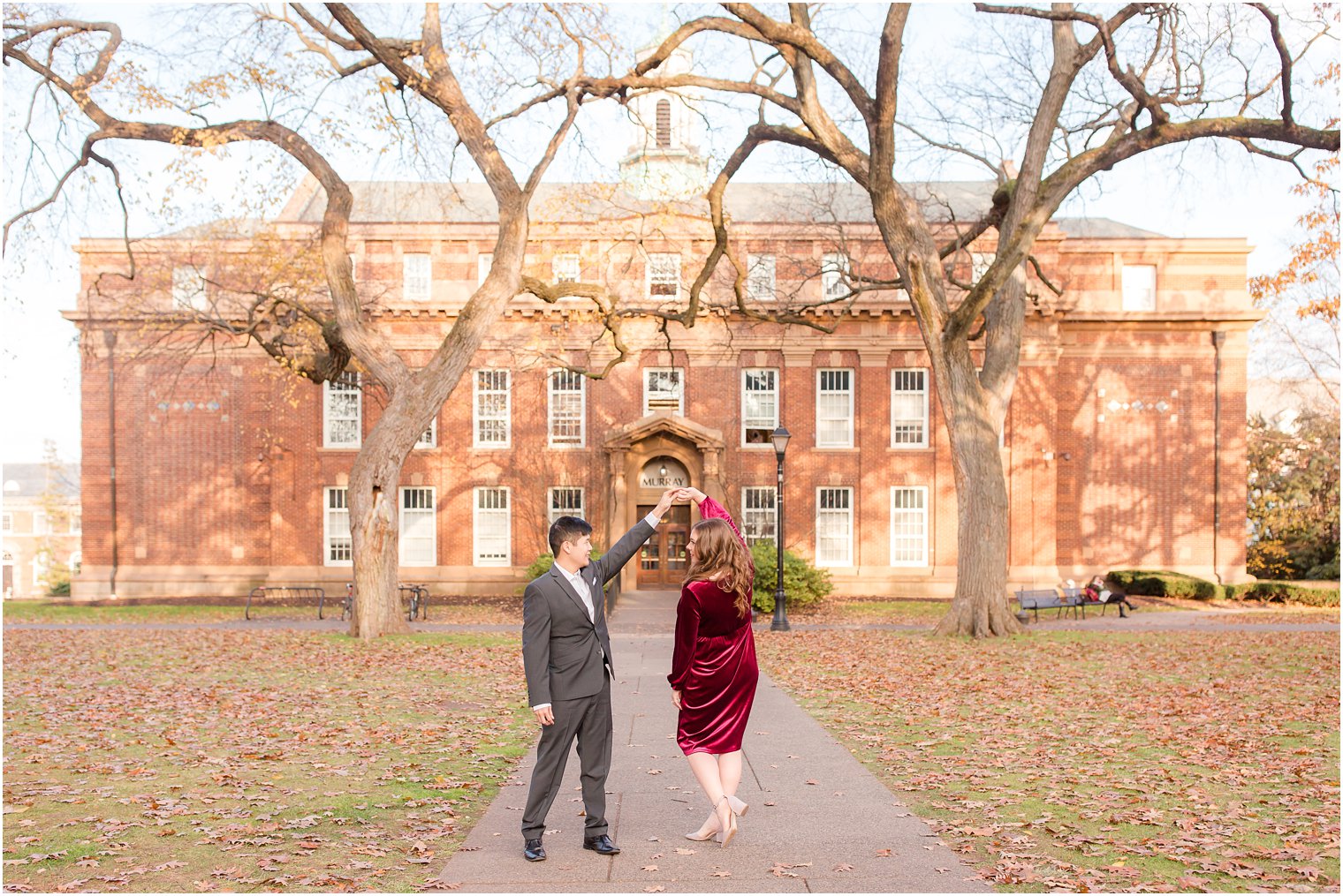 Today I’m taking you back to the fall when I had the pleasure of capturing Katy and Derrick’s Rutgers University Engagement Session. Derrick and Katy met at Rutgers where they were both going to college before Derrick transferred to Stevens Institute of Technology in Hoboken. Derrick was Katy’s next door neighbor in their freshman dorm and the two quickly became friends. They soon discovered that Derrick went to high school in the town over from Katy and that they even had some mutual friends! I love that they chose Rutgers for their session because I know these images will always remind them of that magical time when they were just getting to know each other.