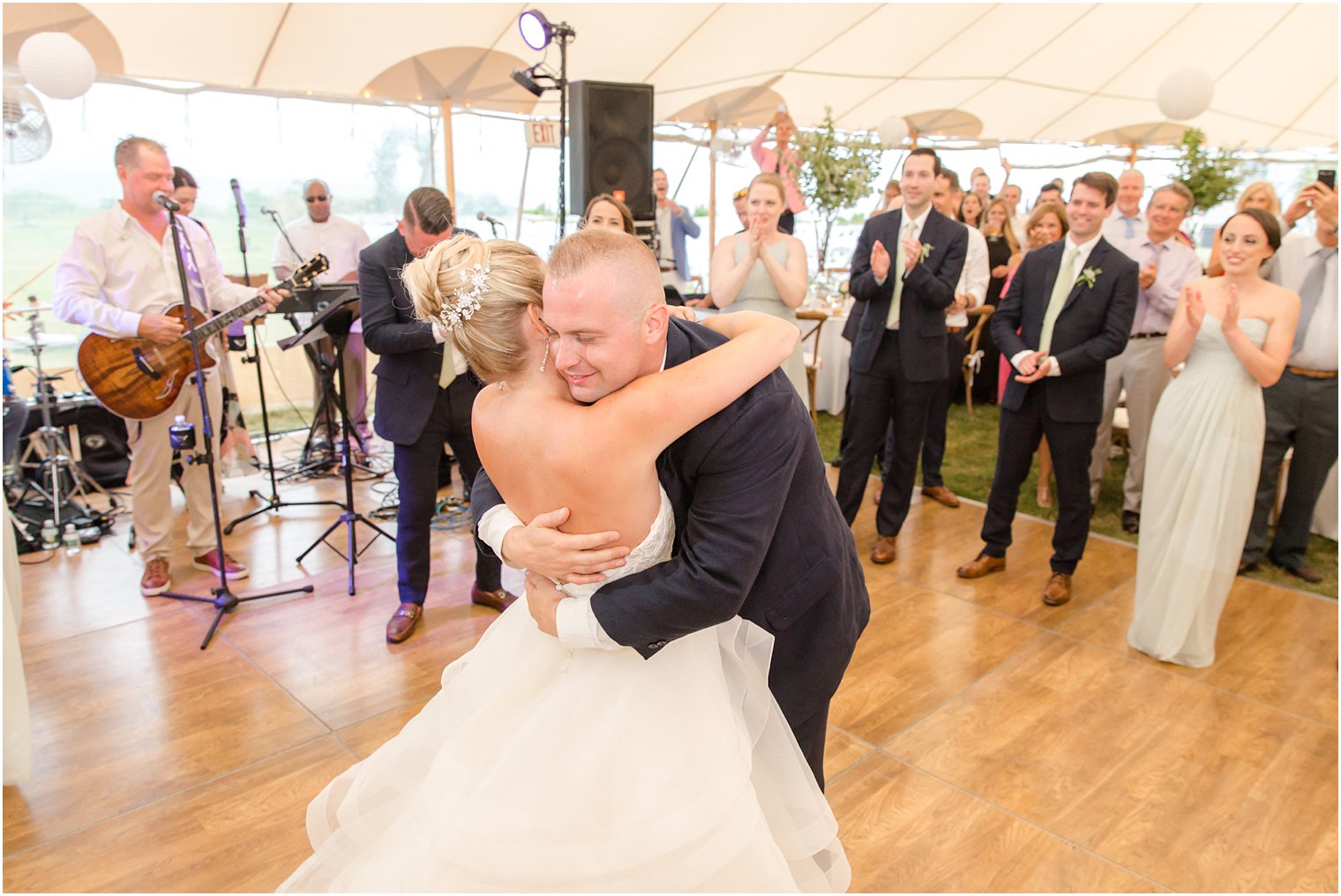 What’s a good way to get your mind off the single digit temps we have today? Re-living a gorgeous summer wedding at one of the prettiest venues on the Jersey Shore! I’m so excited to share that Caroline and Tom’s wedding at Sandy Hook Chapel has been featured on TheKnot.com. This wedding was previously featured in print last year but the editors loved it so much they have added it to the collection of Real Weddings on their site. This is exactly why I love timeless weddings – Caroline and Tom will be celebrating two years of marriage later this year but their wedding is STILL a favorite! Take note, brides: classic and timeless wedding photography just never goes out of style and won’t look outdated when you look back at your wedding images ten years from now. Don’t take my word for it though. Instead, scroll down to enjoy a peek at Caroline and Tom’s wedding day and start pinning your hearts out =) The florals and decor at this wedding are simply to die for!