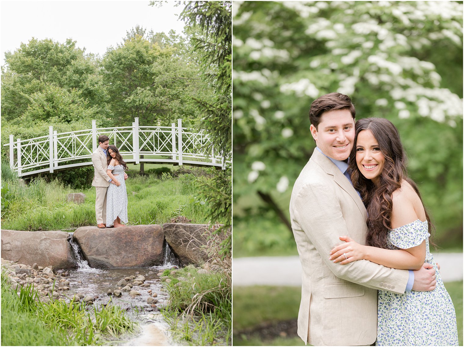Jenna and Zach chose the always stunning Sayen Gardens for their portraits in Hamilton NJ. Sayen Gardens is a gorgeous botanical garden right in the center of historic Hamilton and is a wonderful option for portraits anytime of year. In the late spring, we had lots of gorgeous greenery and flowers in bloom around us while we explored. Jenna was so enthusiastic for their portraits – and she looked amazing! I love both dresses she brought for the session and can we talk about her hair?! She was stunning! I’m always a huge fun of outfits that really pop against your background and that provide lots of possibilities for movements. Jenna’s skirts were fun to twirl and move around and Zach made her feel like a million bucks. He made Jenna laugh and they had such a great time – even enjoying some champagne between outfit changes! Honestly, Jenna and Zach are just so photogenic. I love when my couples really bring their A-game to their session!