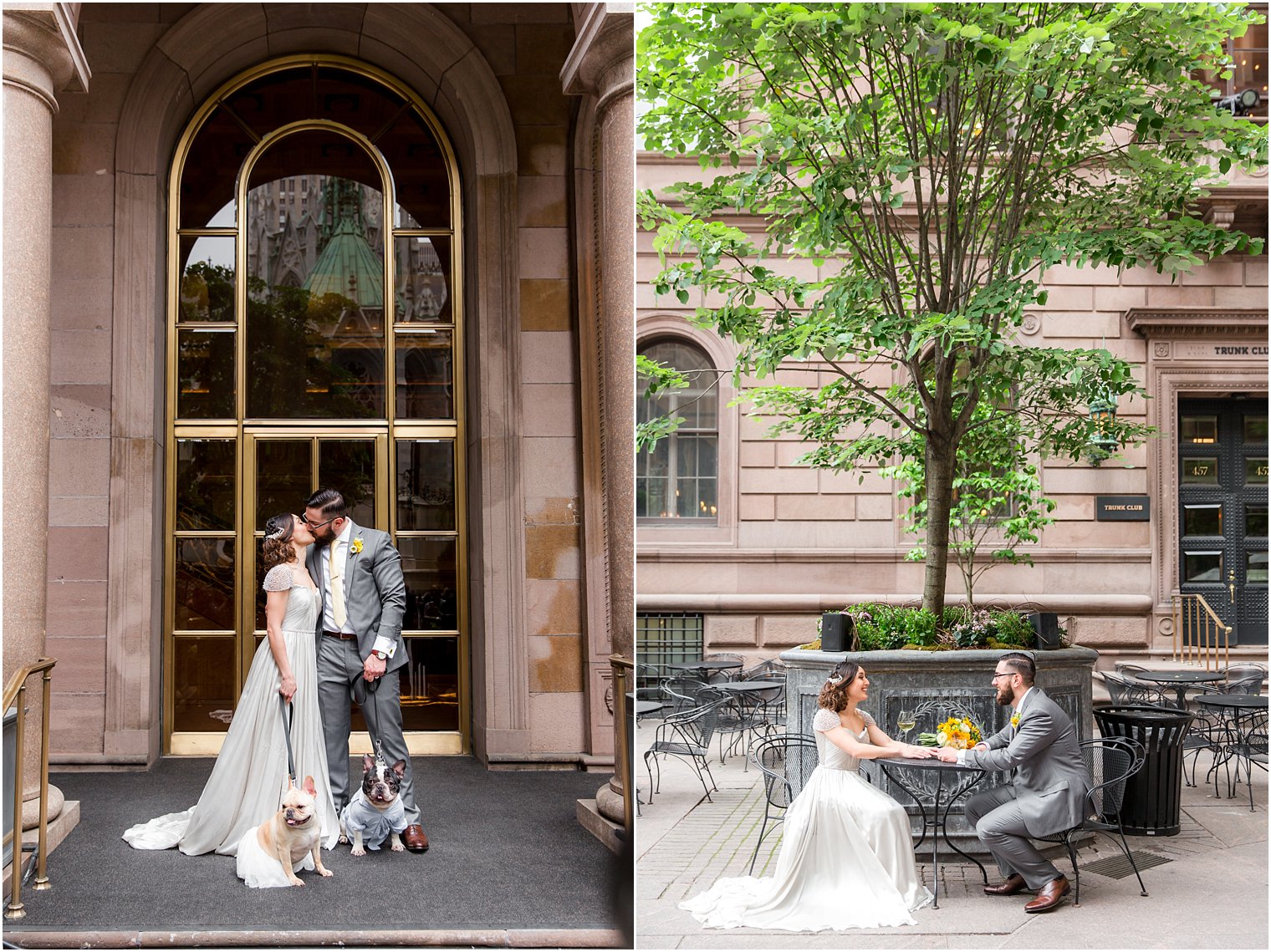 Michelle started the day out in her hotel room at the Lotte New York Palace, overlooking St. Patrick’s Cathedral while Jonathan got ready at their apartment. The morning was full of smiles, laughter, and the retelling of Jonathan’s proposal story from a few short days before the wedding. I loved hearing about his surprise photo booth proposal during a recent trip – I think it’s safe to say that our groom has a knack for planning surprises! When it came time for Michelle to get into her wedding dress the excitement was palpable. Between Michelle’s happiness, her bridesmaids’ and family’s suspense over seeing her in her dress, and the sounds of the parade that was happening right outside the hotel, it was a joyful morning. Once it was time for the ceremony, we stopped the parade, crossed the street, and entered the stunning St. Patrick’s Cathedral. There were so many tourists, but the ceremony space was blocked off for Michelle and Jonathan’s relatives. Jonathan looked dapper in his gray suit and was all smiles while he waited for his beautiful bride. I have to say that the moment when Michelle started walking down the aisle was magical. There were probably hundreds of people in the cathedral at that point, but everyone stopped to admire Michelle and watch Jonathan as he waited for her to walk down the aisle. What an unforgettable moment that led to an equally memorable ceremony. My favorite part of the day was when Jonathan dipped Michelle for a kiss right at the altar before their recessional. Adorable! Enjoy this glimpse into this beautiful St. Patrick’s Cathedral wedding!
