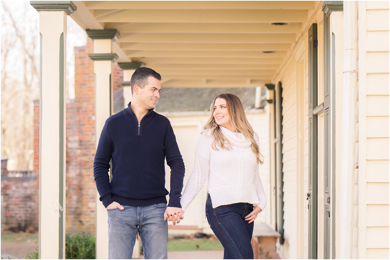 Today I’m excited to share Christina and Rosti’s winter engagement at Allaire State Park, shot by our Associate Photographer Jocelyn last November. They met up in the morning and it paid off to get up so early because they had the prettiest morning light! I wish I could shoot in this type of light all the time! An added perk of a morning session was that they escaped the late morning and afternoon crowds that are typically found at this park in the fall. It’s such a popular spot thanks to its rustic setting, historic row houses, and old barns.